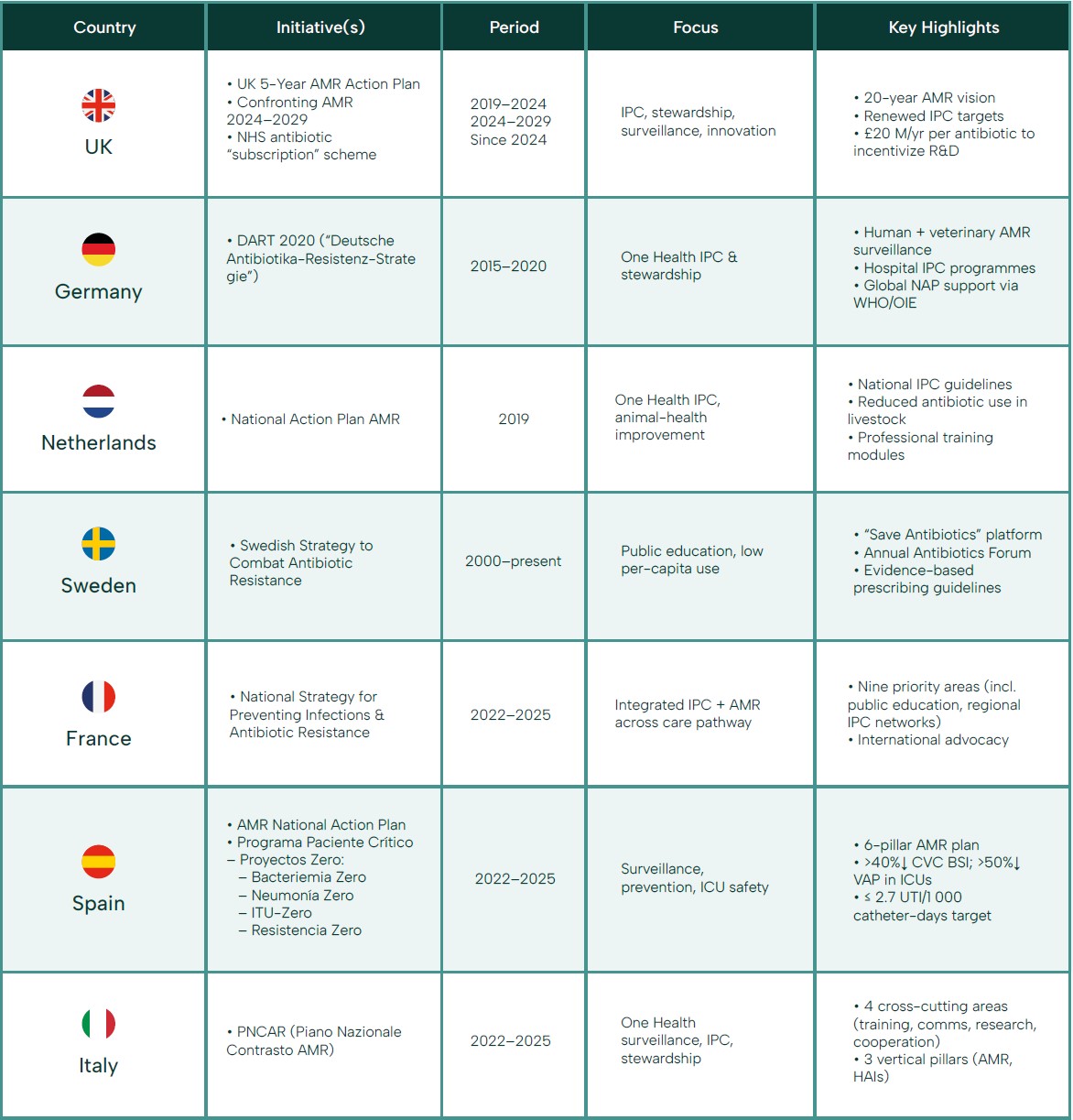 The European One Health Action Plan against AMR, for instance, emphasizes reducing healthcare-associated infections and optimizing catheter use, but it does not include explicit, standalone targets for CAUTI reduction.